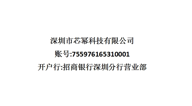 5、请不要把货款汇到其它任何帐户,芯幂科技只对以下帐户负责!